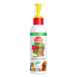 El Spray amargante de Fooey! Ayuda a corregir algunos de los comportamientos no deseados de las mascotas. Morder o masticar algunos de los artículos en casa (zapatos, plantas, cables) quedará en el pasado, hecho con ingredientes amargantes naturales evitará que una vez que lo prueben quieran repetir. Funciona perfectamente para evitar que se lengüeteen heridas en proceso de sanación, o continúen con comportamientos compulsivos como morder o chupar ropa, patas o cola,etc. Completamente seguro y no irrita las heridas.