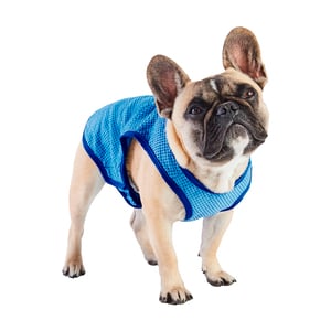 Mojar, escurrir y desgastar. Cuando el agua se evapore, repita los pasos. NOTA: Este chaleco de hielo está diseñado para cubrir la mayor parte de la espalda de su perro, pero no debe extenderse hasta la cola como un abrigo. El efecto de enfriamiento óptimo se centra en la parte superior de la espalda y el pecho. Al sacar el chaleco del paquete, puede estar húmedo y listo para usar. Humedézcalo siempre antes de desplegarlo o manipularlo para evitar desgarros en el tejido.