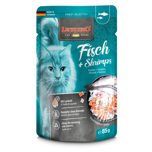 Salmón (30 %); caldo de arenque, salmón, gambas (28,8 %); arenque (18 %); gambas (12 %); hígado de ave (10 %); cáscaras de huevo, secas (0,5%); minerales (0,5 %); aceite de salmón (0,2%).