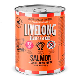 Carne de salmón, caldo de pescado oceánico, carne de pescado blanco, hígado de pollo, camote orgánico, guisantes orgánicos, zanahorias orgánicas, goma guar, vitaminas (suplementos de vitamina E, suplemento de niacina, l-ascorbil-2-polifosfato (Fuente de vitamina C), mononitrato de tiamina (fuente de vitamina B1), pantotenato de calcio, suplemento de vitamina A, clorhidrato de piridoxina (fuente de vitamina B6), suplemento de riboflavina (fuente de vitamina B2), ácido fo?lico, vitamina B12 Suplemento, bioena, suplemento de vitamina D3), minerales (sulfato de zinc, sulfato de hierro, sulfato de cobre, sulfato de manganeso, levadura de selenio (inaceva), yoduro de potasio).