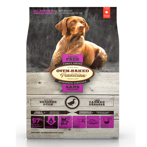 Pato (18% de pato, 9,84% de pato deshidratado), tapioca, pescado deshidratado, guisantes, proteína de guisantes, garbanzos, aceite de canola, fibra de guisantes, lentejas verdes, semillas de lino, sal marina, inulina, clorhidrato de glucosamina, extracto de yucca schidigera, sulfato de condroitina, extracto de romero.