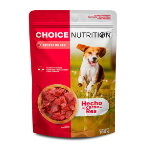 Agua, res, salvado de trigo, pollo, proteína de soya, gluten de trigo, almidón de maíz, sal, goma guar, carbonato de calcio, fosfato de sodio, lecitina de soya, azúcar, aceite vegetal, glutamato monosódico, sabor a carne de res, sabor humo, alginato de sodio, betaína, eritorbato de sodio, ácido cítrico, dl-metionina, color caramelo, sulfato de zinc, cloruro de potasio, acetato de dl-alfa-tocoferol, sulfato ferroso, pantotenato de calcio, sulfato de manganeso, nicotinamida, sulfato de cobre, riboflavina, acetato de retinol, EDDI, clorhidrato de piridoxina, clorhidrato de tiamina, ácido fólico, selenito de sodio, cianocobalamina y colecalciferol.