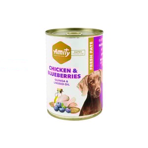 Amity pollo y arándanos es un alimento húmedo y natural, bajo en granos y libre de gluten perfecto para perros adultos de todas las razas. Su principal ingrediente es carne de pollo, que es una fuente de proteína de alta digestibilidad y palatabilidad, además de ser rico en triptófano y bajo en grasa. También contiene quinoa como fuente de proteína vegetal de alto valor nutritivo y aceite de linaza como fuente de ácidos grasos omegas 3.