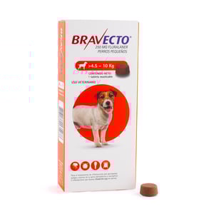 - Bravecto Tableta Masticable Antiparasitaria Externa para Perro, 4.5 - 10 kg >PRODUCTOS>Bienestar para tu Mascota Perro>Bravecto Tableta Masticable Antiparasitaria Externa para Perro, 4.5 - 10 kg