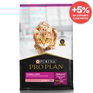 Harina de subproductos de pollo, arroz, carne de salmón congelada, harina de soja, gluten de maíz, fibra de soja, gluten de trigo, harina de pescado y/o harina de alga (Schizochytrium sp.), aceite de pollo y/o grasa vacuna preservados con tocoferoles (fuente de vitamina E), hidrolizado a base de subproductos de pollo y/o cerdo, inulina, ácido fosfórico y/o bisulfato de sodio, fibra de caña de azúcar y/o celulosa, cloruro de potasio, sal, aceite de pescado, suplemento vitamínico antioxidante (A, D3, E, K3, B1, B2, B3, B5, B6, B7, B9, B12, BHT), suplementos minerales [(sulfatos: zinc, hierro, manganeso, cobre), (proteinatos: zinc, hierro, manganeso, cobre, selenio), yodato de calcio, selenito de sodio], cloruro de colina, DL-metionina, taurina, L-arginina, levadura seca (Saccharomyces cerevisiae ssp.), ácido ascórbico (fuente de vitamina C), carbonato y/o fosfato cálcico, L-lisina, betacaroteno.