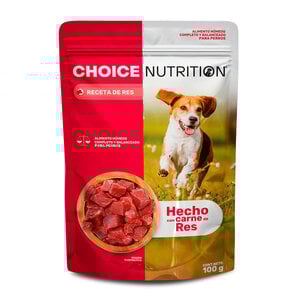 La receta de res de Choice Nutrition esta formulada de acuerdo a los perfiles nutricionales establecidos por la AAFCO para el mantenimiento de perros adultos. El alimento húmedo de Choice Nutrition está elaborado con carne de pollo, sin conservadores, ni colorantes artificiales por lo que es ideal para complementar la nutrición diaria con alimento seco. Ofrece a tu mascota una nutrición completa y balanceada para esta etapa de vida.