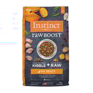 Instinct Raw Boost Gut Health Receta Pollo es un alimento natural libre de granos diseñado para cubrir los requerimientos nutricionales de perros adultos con sensibilidad digestiva. Formulado con un elevado nivel de proteínas y adicionado con bocados de carne cruda liofilizada, además es libre de cereales y contiene probióticos, antioxidantes y omegas-3 y 6 para mantener en óptimo nivel su salud digestiva, su salud cardiaca y su sistema inmune.