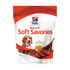 Carne de res, papas, harina de trigo, melaza de caña, glicerina, grasa de pollo, queso cheddar, guisantes, gelatina de cerdo técnica, sabores naturales, leche descremada, ácido cítrico, ácido láctico, tocoferoles mixtos para mayor frescura.