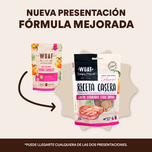Carne de cerdo, harina de avena, zapallo, polvo de hornear, goma xanthan, tocoferol y extracto de romero (antioxidantes naturales), orégano deshidratado, romero deshidratado.